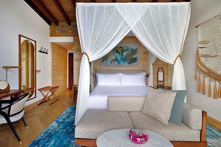 Food lovers will discover five chic on-site dining venues, each with its own mood and menu. Muse serves Italian and Mediterranean dishes in a modern setting; Azido brings Japanese flavors to the coast; Soley offers International fare; Moutya grills up BBQ favorites; and Kokoye adds another international twist. The contemporary ambiance across venues pairs perfectly with sunset moments, and live music performances add a lively backdrop to evenings. Spa and Wellness packages invite a little pampering for those seeking relaxation between beach strolls.
