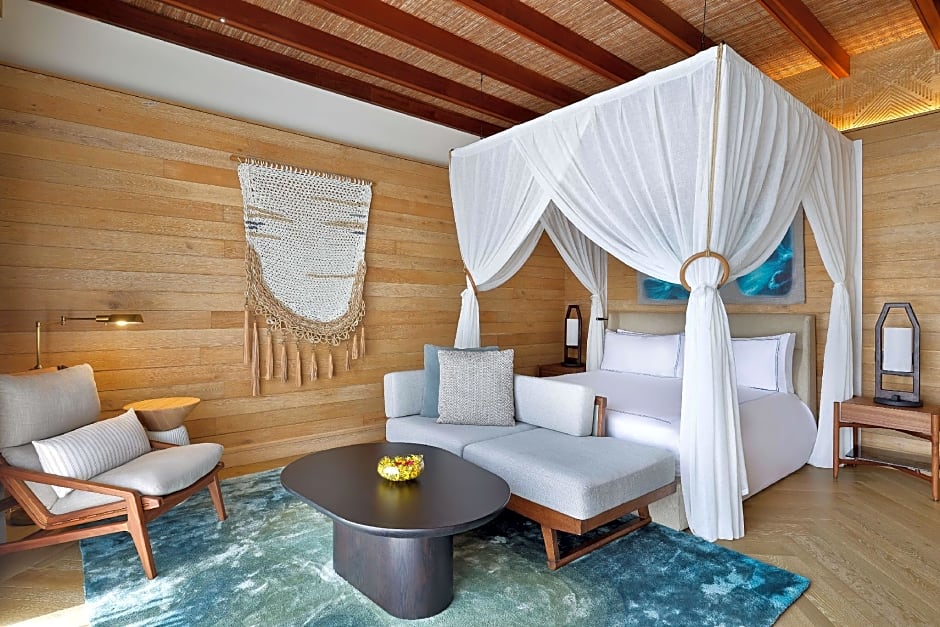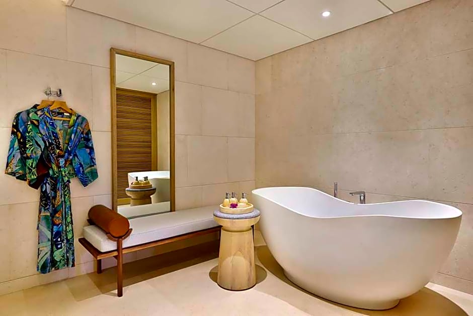 One Bedroom Bay House Suite With Plunge Pool is 1249 square feet and includes balcony, extra beds on demand, desk, hairdryer, ironing set, and bathrobes.